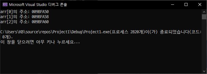 printf("arr[%d]의 주소: %p\n", i, arr + i);