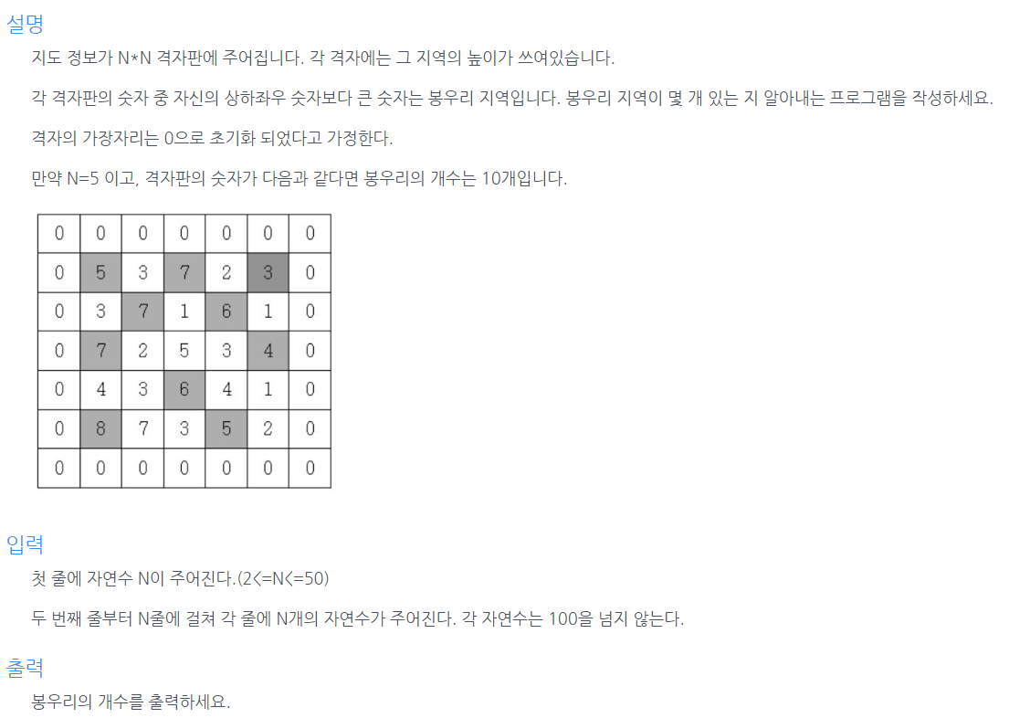 4. 상, 하, 좌, 우 중에 나보다 크거나 같은 값이 있다면 루프를 더 이상 돌지 않아도 됨