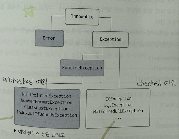 Error와 Exception 클래스는 `Throwable`클래스를 상속받는다.(최상위 클래스는 Object)