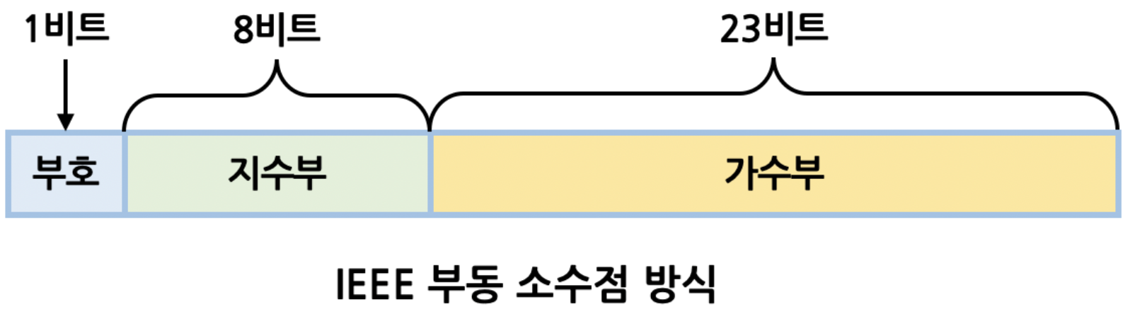 수식으로는 부호 * M(가수부) * 2^E(지수부)_로 표현할 수 있다.