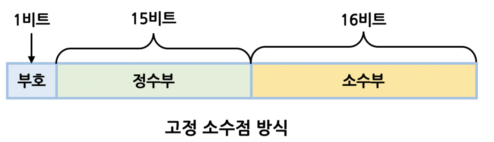 고정소수점 표현방식은 실수를 부호부, 정수부, 소수부로 나누어 표현하는 방식이다.