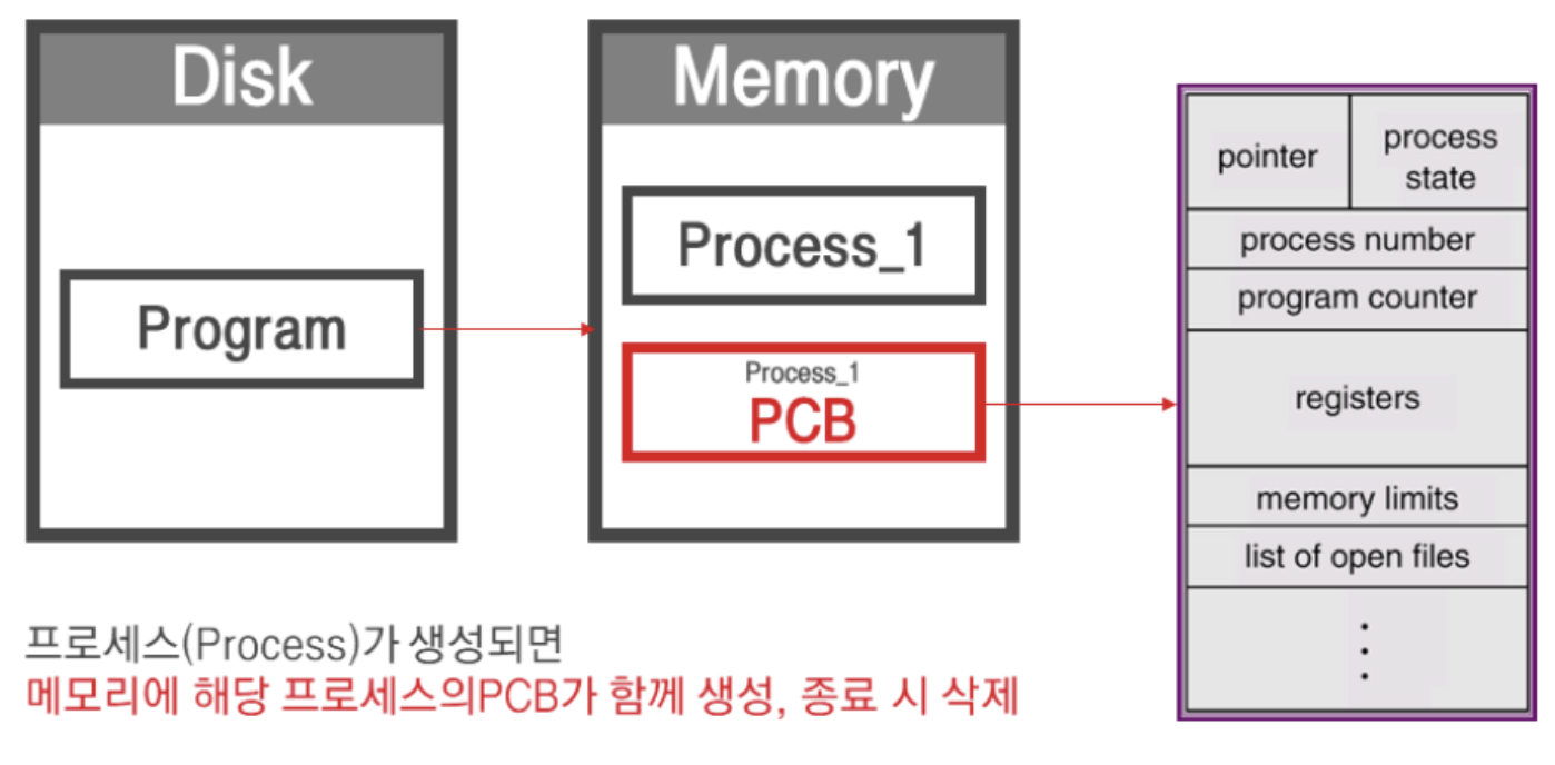 프로세스 생성과 동시에 그 프로세스의 고유한 PCB도 함께 생성된다.