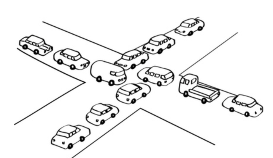ex) 교차로에 진입한 자동차는 뒤로 물러서거나 강제로 나갈 수 없게 된다.