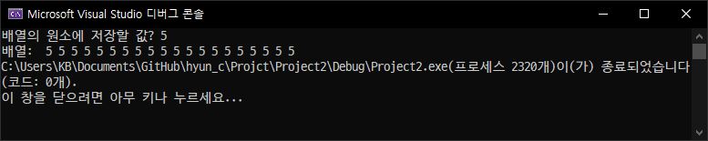 # 정수형 배열을 특정 값으로 채우는 fill_array 함수를 작성하시오. 단, 포인터와 포인터 역참조 연산자를 이용한다.fill_array함수를 이용해서 크기가 20인 int 배열을 입력받은 값으로 채우고 출력하는 프로그램을 작성하시오.