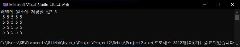 # 열 크기가 5인 2차원 int 배열의 모든 원소를 특정 값으로 채우는 fill_2d_array 함수를 작성하시오. 함수의 매개변수로 배열 전체에 대한 포인터와 배열의 행 크기를 전달한다. 열 크기-5,행 크기-5