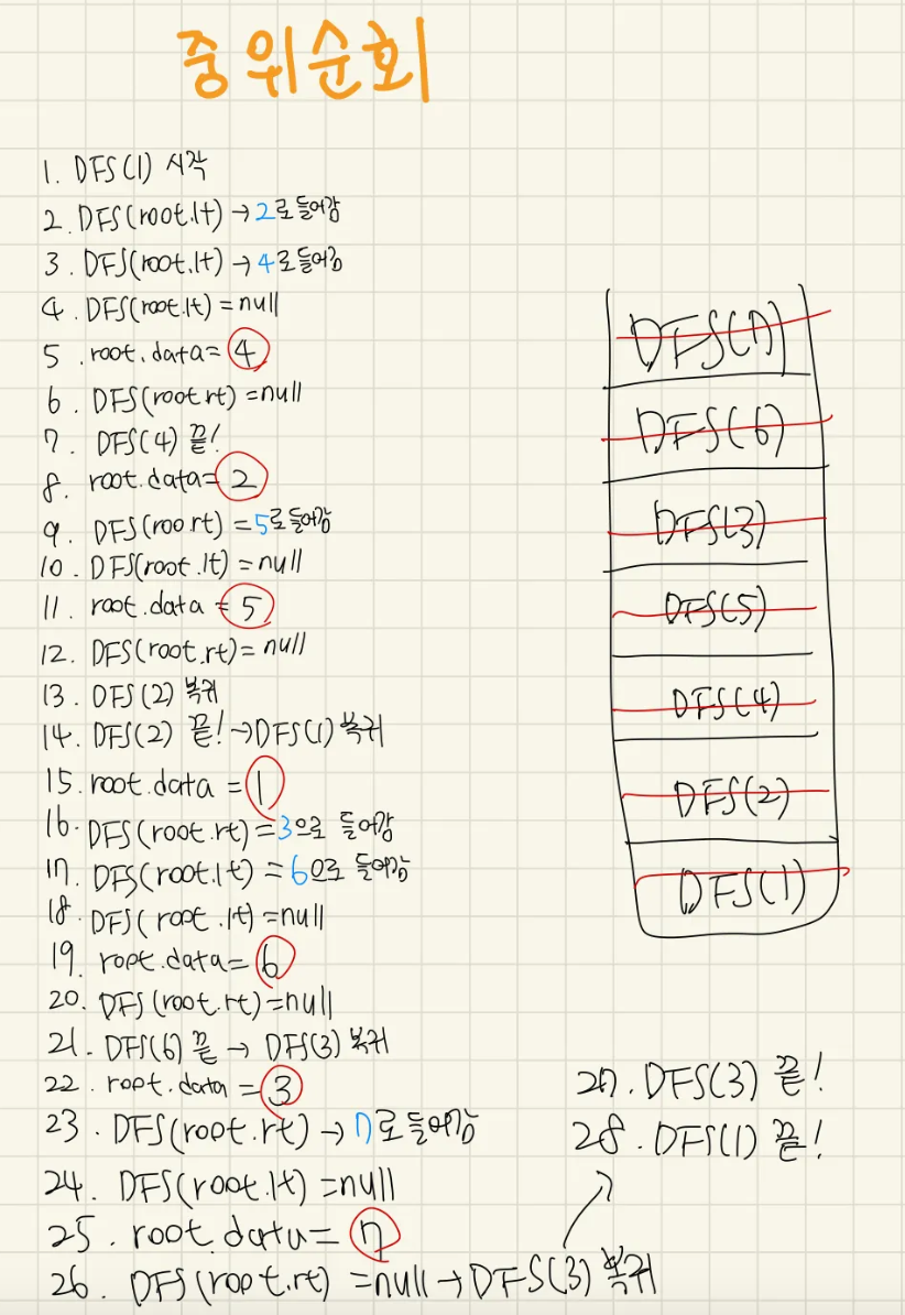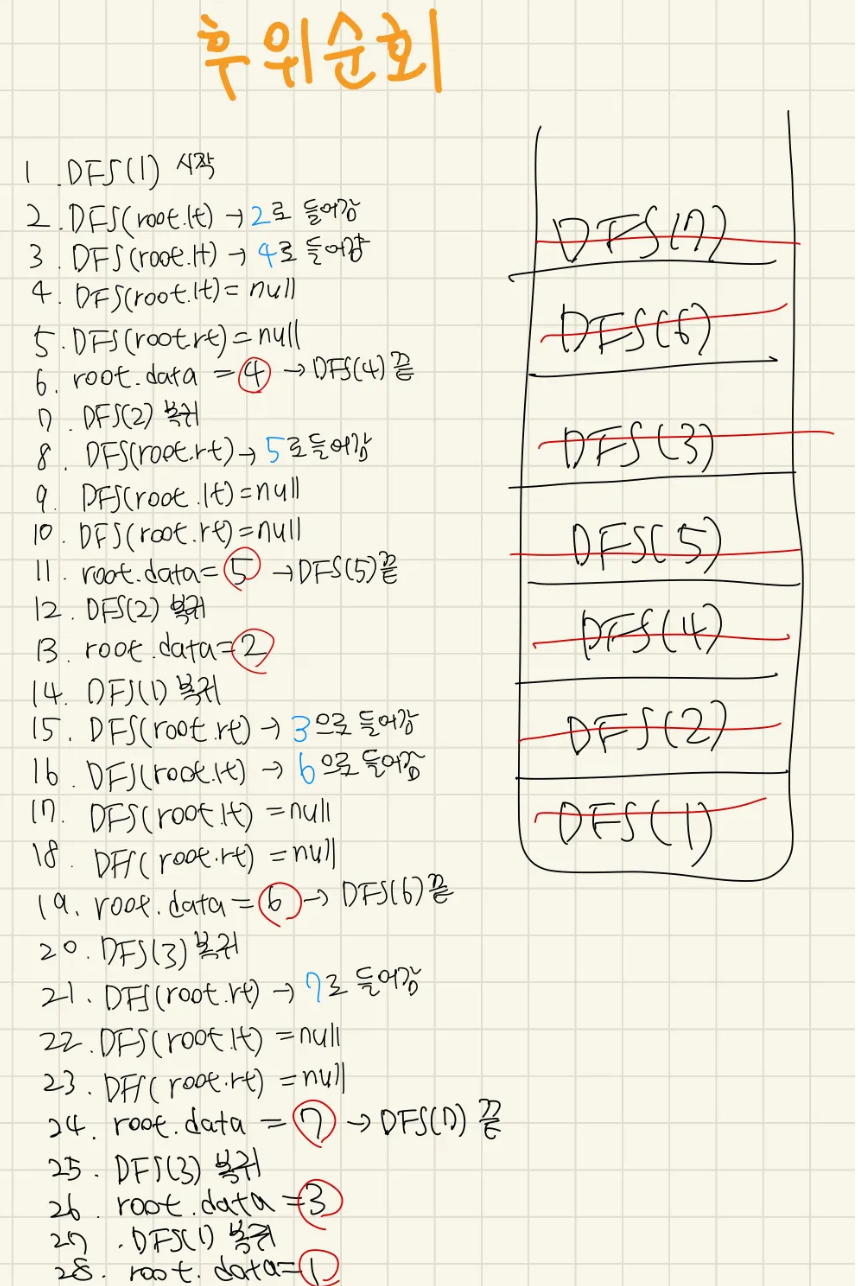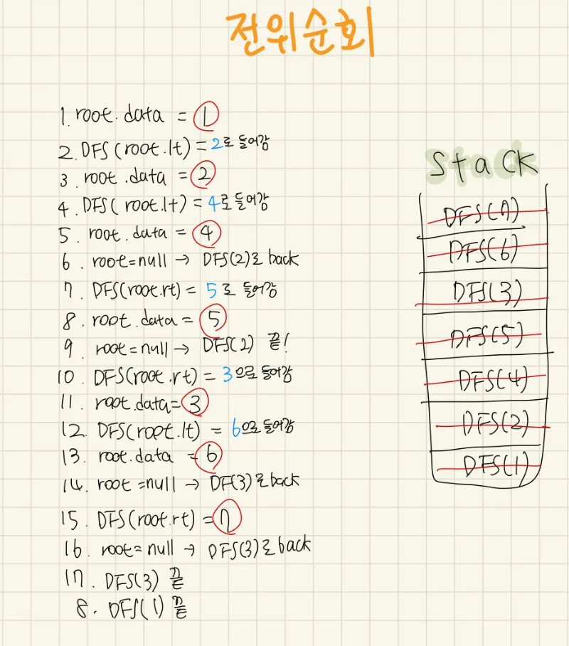 트리 구조를 꼭 그려보고, 전위순회/중위순회/후위순회에 대해 순서가 스택을 그려보면서 꼭 이해해 보자!