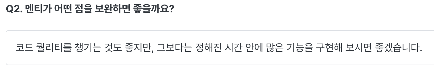 실제로 초반 피드백들을 보면, 내가 그 주에 아쉽다고 느꼈던 부분이