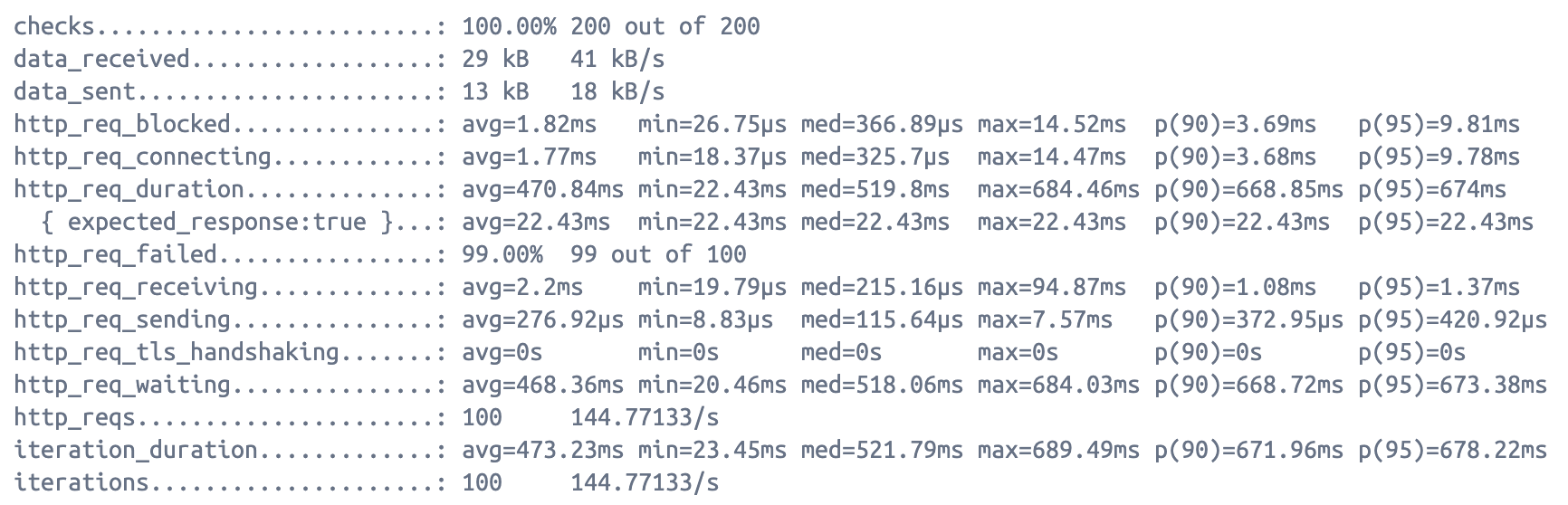하지만 최단 응답 시간이 29.45ms -> 130ms로 4배 이상 느려졌다. 😯