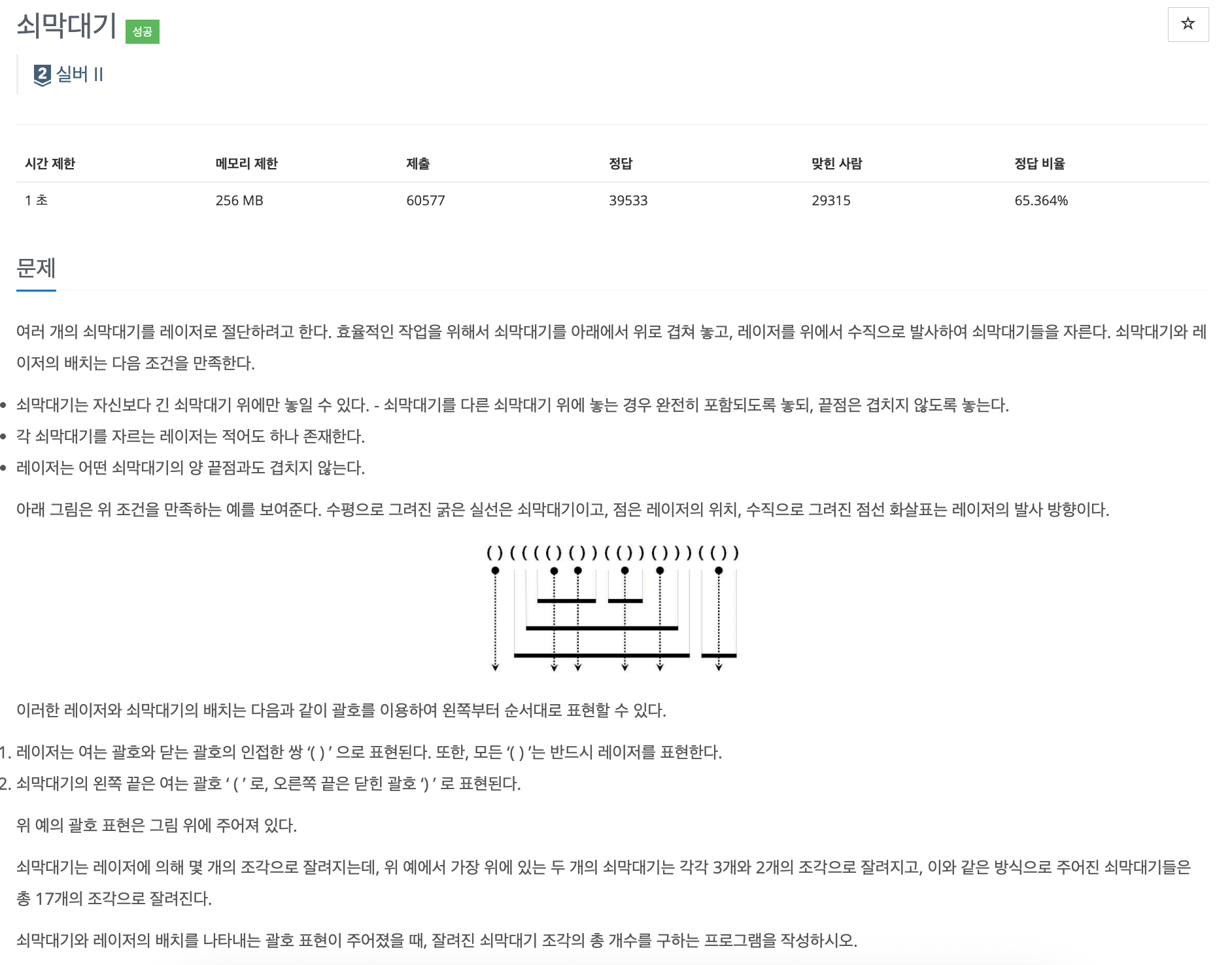 (문제의 그림을 보면 알 수 있듯이, 단순한 닫힌 괄호는 하나의 막대 조각을 가리키게 된다.)