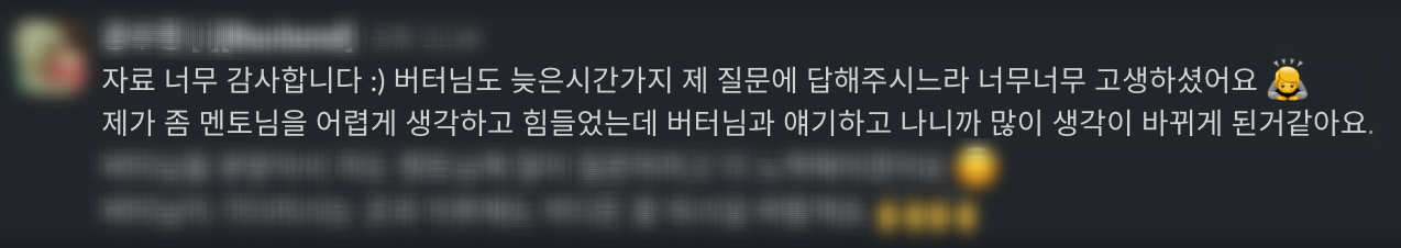 나도 정~말 오래 고민하고 간절했던 만큼 진심으로 잘 선택하시길 바라고, 효율적으로 멘토링받으셨으면 하는 마음에 내가 느낀 모든 것들을 정리해서 공유해드리고 있다.