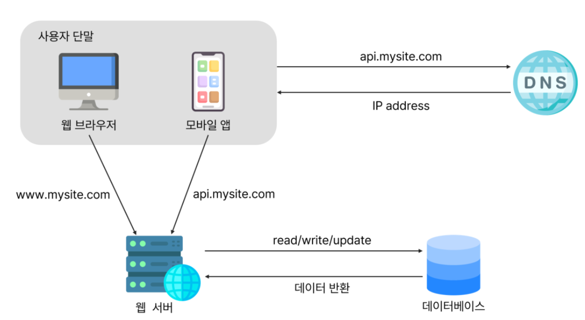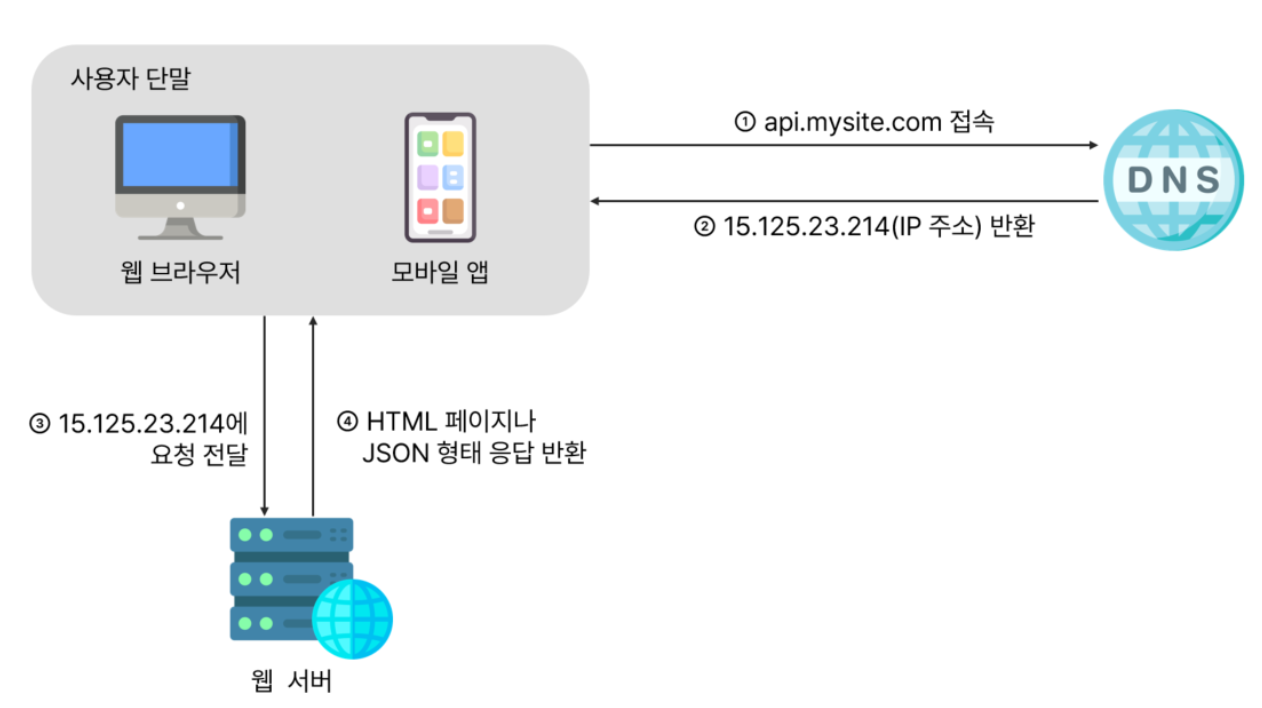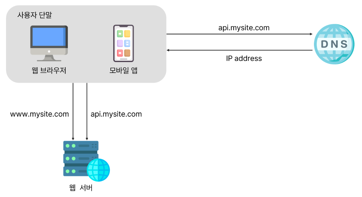 - 사용자는 api.mysite.com 같은 도메인 이름으로 접속한다.