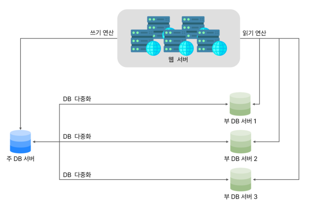 - 데이터 추가, 삭제, 갱신 같은 변경 연산은 주 데이터베이스로 전달한다.