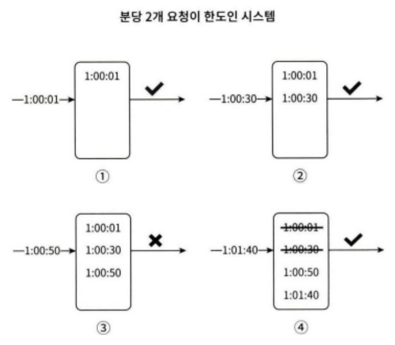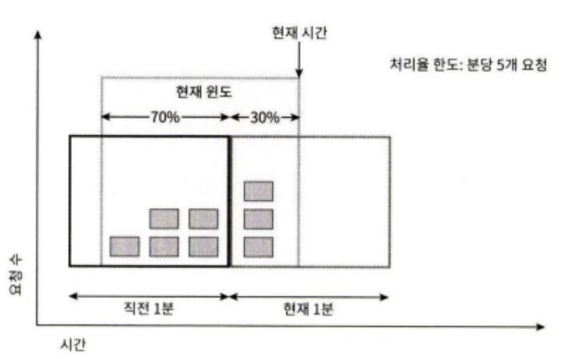 - 연성 처리율 제한: 요청 개수는 잠시 동안은 임계치를 넘어설 수 있다.