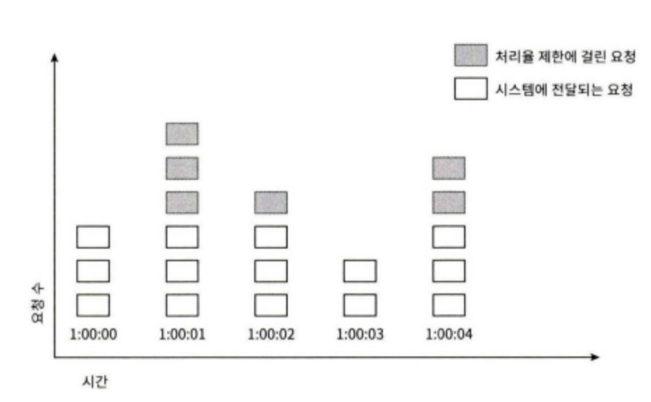 예를 들어 처리율 제한 규칙이 너무 빡빡하게 설정되었다면 많은 유효 요청이 처리되지 못하고 버려질 것이다.