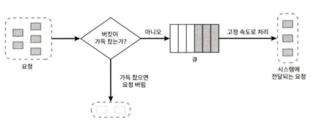- 처리율(outflow rate) : 지정된 시간당 몇 개의 항목을 처리할지 지정하는 값이다. 보통 초 단위로 표현된다.