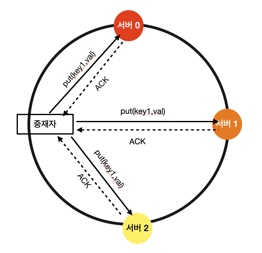 따라서 서버 1로부터 성공 응답을 받았다면 서버 0, 서버 2로부터의 응답을 기다릴 필요가 없다.