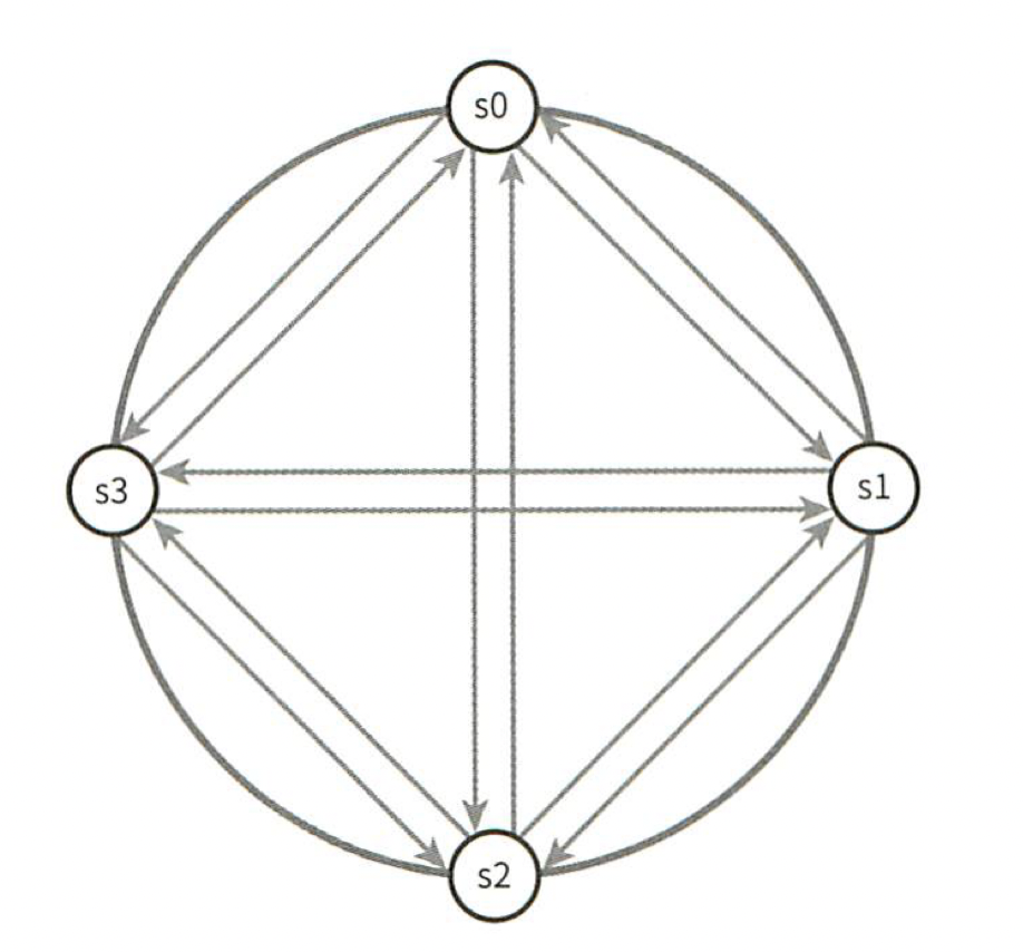 예를 들어, s0, s1, s2가 실제로는 모두 서버 A 한 대에 존재하는 가상 노드들일 수 있다.
