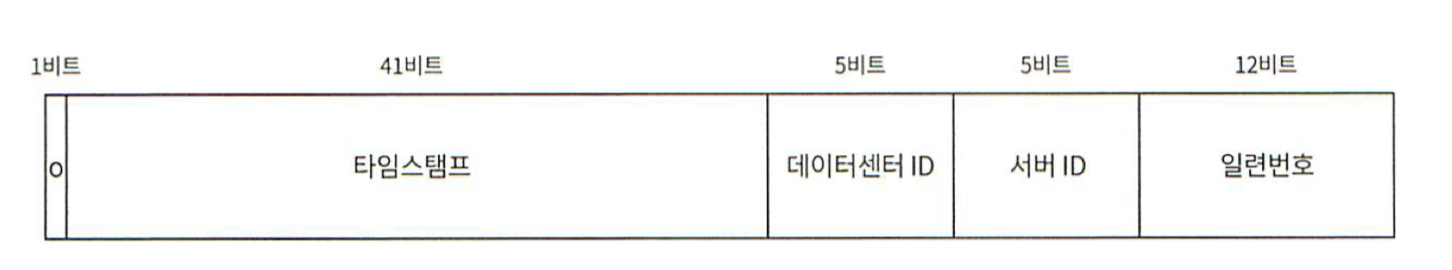 여기서 선택한 방식은 트위터 스노플레이크인데, 모든 요구사항을 만족하면서도 분산 환경에서 규모 확장이 가능했기 때문이다.