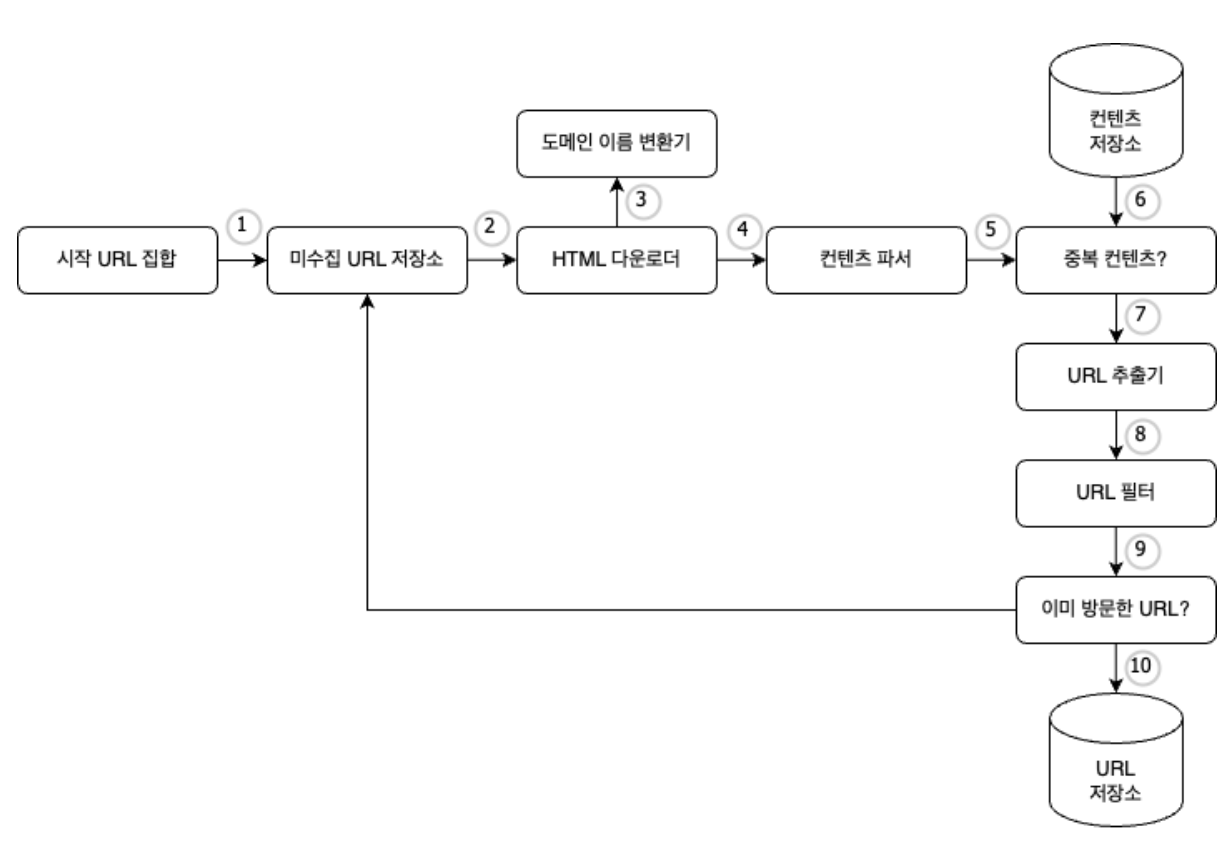 따라서 크롤러 설계에서 가장 중요한 첫 단계는 목표로 하는 데이터의 규모와, 필요한 주요 기능을 정확하게 정의하는 일이다.