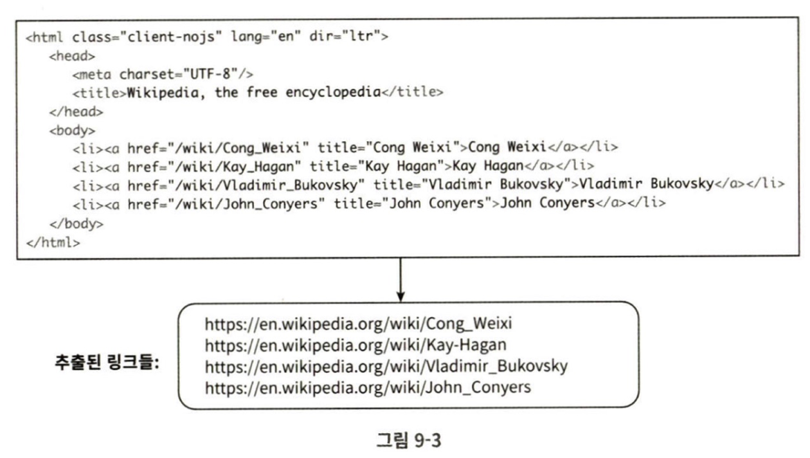 - URL 추출기는 해당 HTML 페이지에서 링크를 골라낸다.