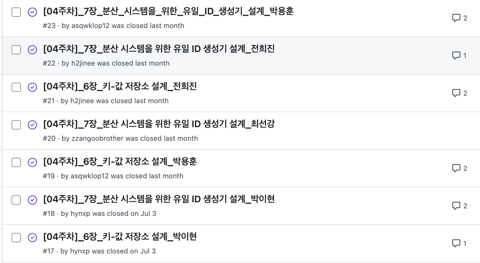 발표도 고려했었지만, 이 책 자체가 난이도가 있고 또 재직자들이 많기 때문에 발표 자료까지 준비하는 건 타이트하다고 생각했다.
