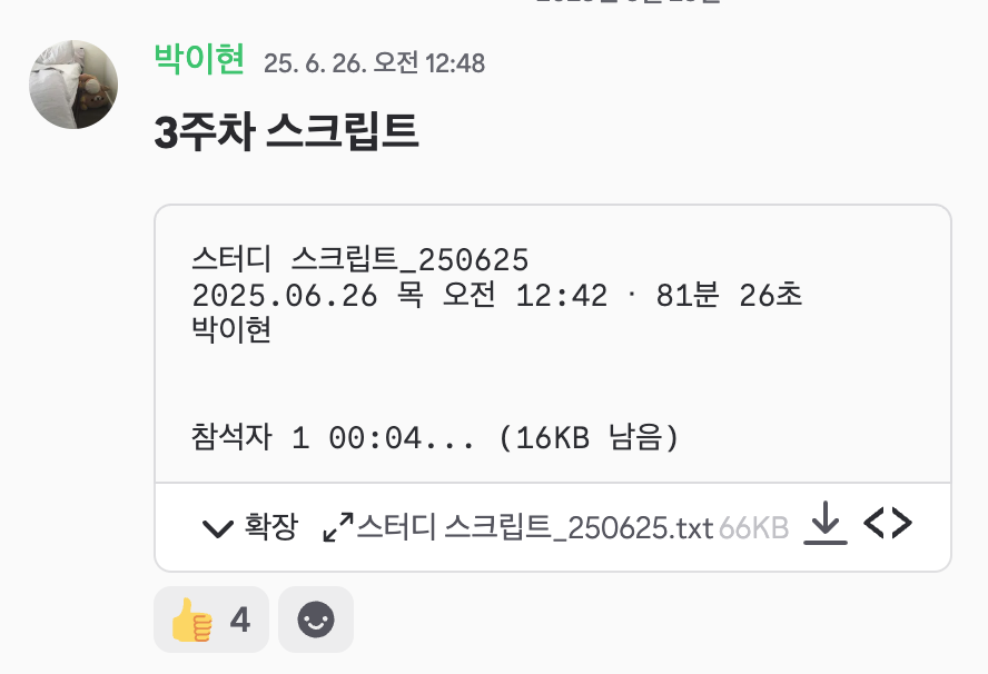 그리고 각 스크립트는 따로 스터디원들한테 공유했다.