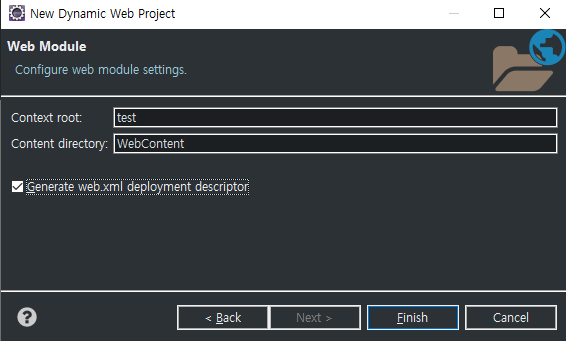 Generate web.xml deployment descriptor를 클릭해야 web.xml이 생성된다.