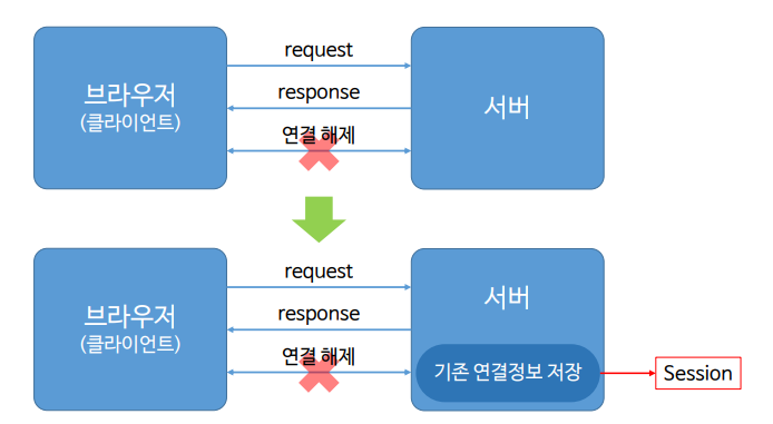 http 프로토콜은 클라이언트와 서버 간에 요청, 응답이 한 번 이루어지면 연결을 해제한다.