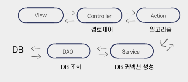 - Action - view의 경로를 갖고 있으며, view에게 보여줄 데이터 VO(DTO)를 처리