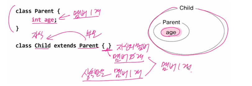 - 두 클래스를 부모와 자식으로 관계를 맺어주는 것